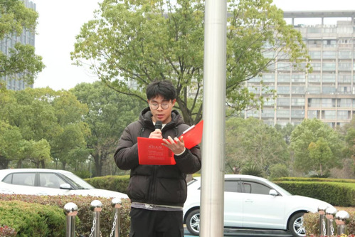 学生会执行主席陈凯进行国旗下演讲。接着,学生代表胡梓桦带领全体学生宣誓,立志学好专业知识,助力衢州发展和学校建设。