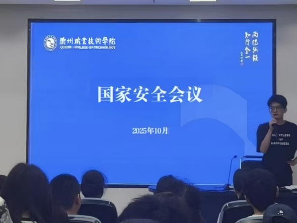 在国家安全会议上,辅导员徐佳恒就国家安全、校内禁烟、禁毒防艾、反诈防骗、网络翻墙等多个安全教育领域,结合一系列真实案例,用“身边事” 讲解安全知识与防范技巧,特别强调寝室长要切实发挥寝室安全“第一责任人” 的作用,积极排查各类安全隐患,积极参与各类矛盾化解,及时转发各类安全提醒并上报可疑情况,以身作则,带动室友增强整体安全意识。