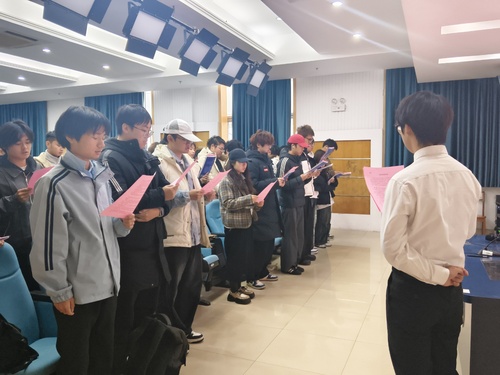 活动现场庄严肃穆,全体同学起立奏唱国歌,激昂的旋律中凝聚着青年学子的爱国情怀与法治信仰。随后,同学们手持宪法文本,跟随教育部政策法规司司长逐字逐句领读宪法核心条文,朗朗诵读声在报告厅内回荡,让大家在沉浸式体验中直观感受根本大法的威严与力量,深刻领会宪法作为国家治理基石的重要意义。