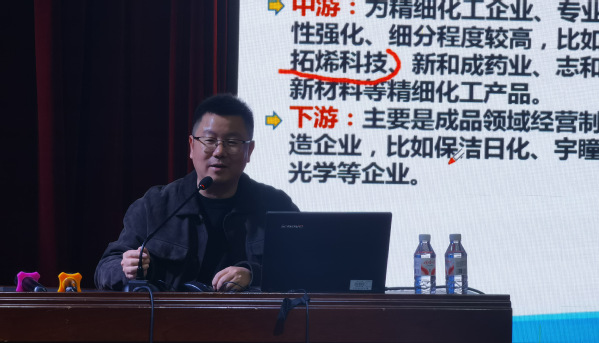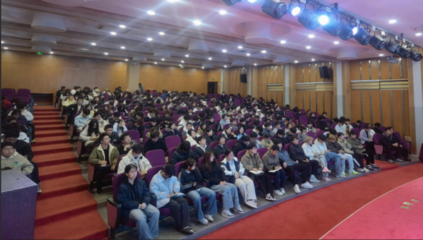 2025年12月3日,浙江拓烯光学新材料有限公司总经理,华友新材料学院产业导师徐小武,为我院25级全体新生带来了一场主题为《精细化工自动化、智能化的现状与发展简述》的精彩讲座。活动在图书馆一号报告厅举行,华友新材料学院院长杨明华、副院长牛瑞霞、25级新生及相关教师共同参与了本次活动。