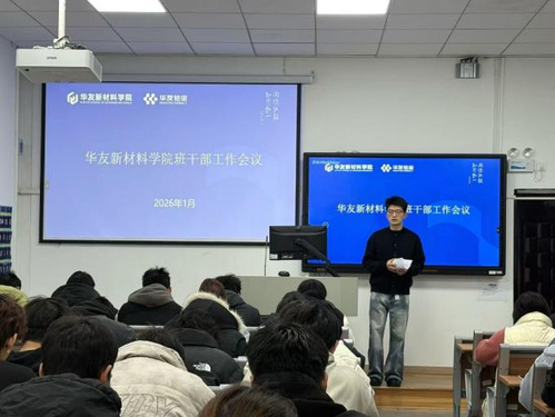 为进一步强化班级管理效能,明确班委工作职责,凝聚工作合力,确保期末各项工作平稳推进,1 月 8 日,华友新材料学院组织召开全院班干部工作会议。24 级、25级各班班长、团支书、学习委员等核心班委成员参会。学院分团委书记徐佳恒主持会议并部署相关工作。