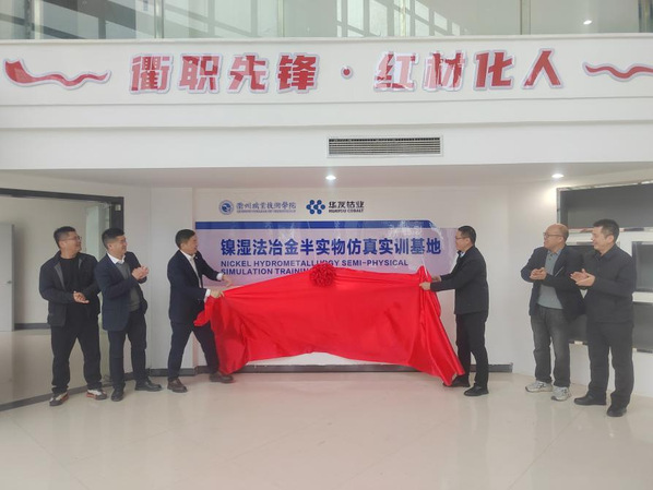会前,华友钴业集团李谦一行对校企共建的镍湿法冶金半实物仿真实训基地进行揭牌。
