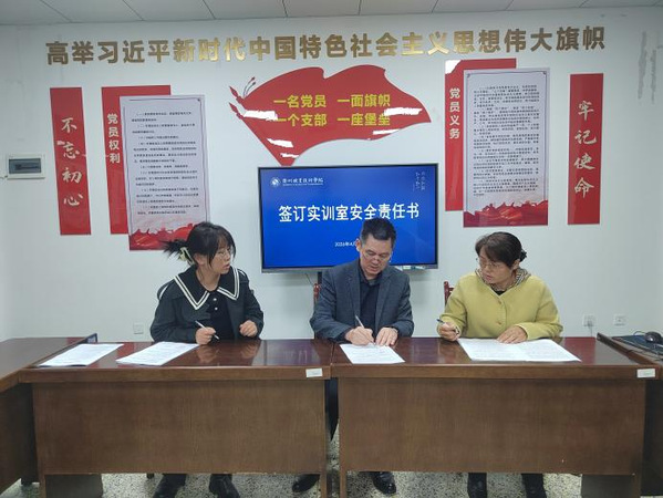 会议期间,学院逐级签订党风廉政建设责任书、校园安全稳定责任书、实训室安全责任书,进一步明确责任分工,强化责任落实。